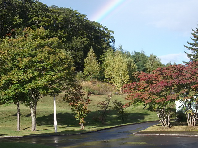 先程、スコールが降った後、虹が掛かっていました。