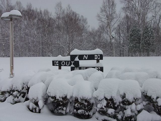 比較的、降雪の少ないINコースも一面銀世界です。