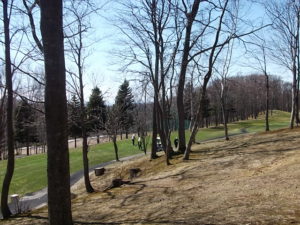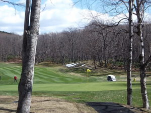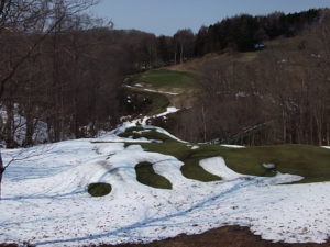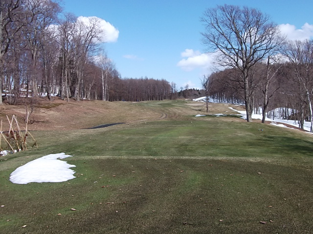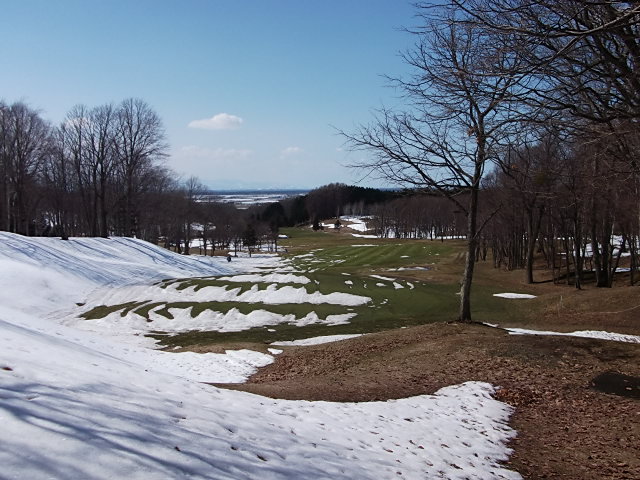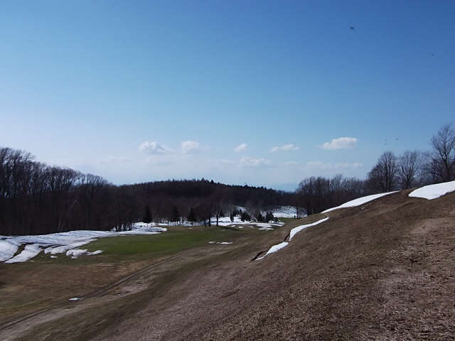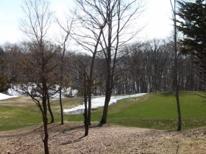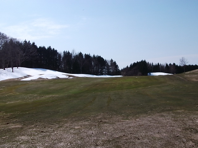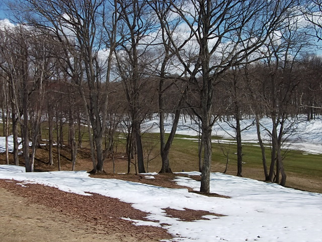 9番ホールの林間はまだ残雪が・・・・