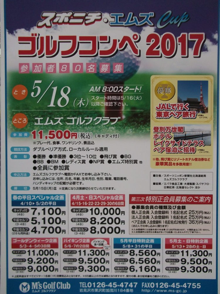 お申込みはエムズゴルフクラブ迄!