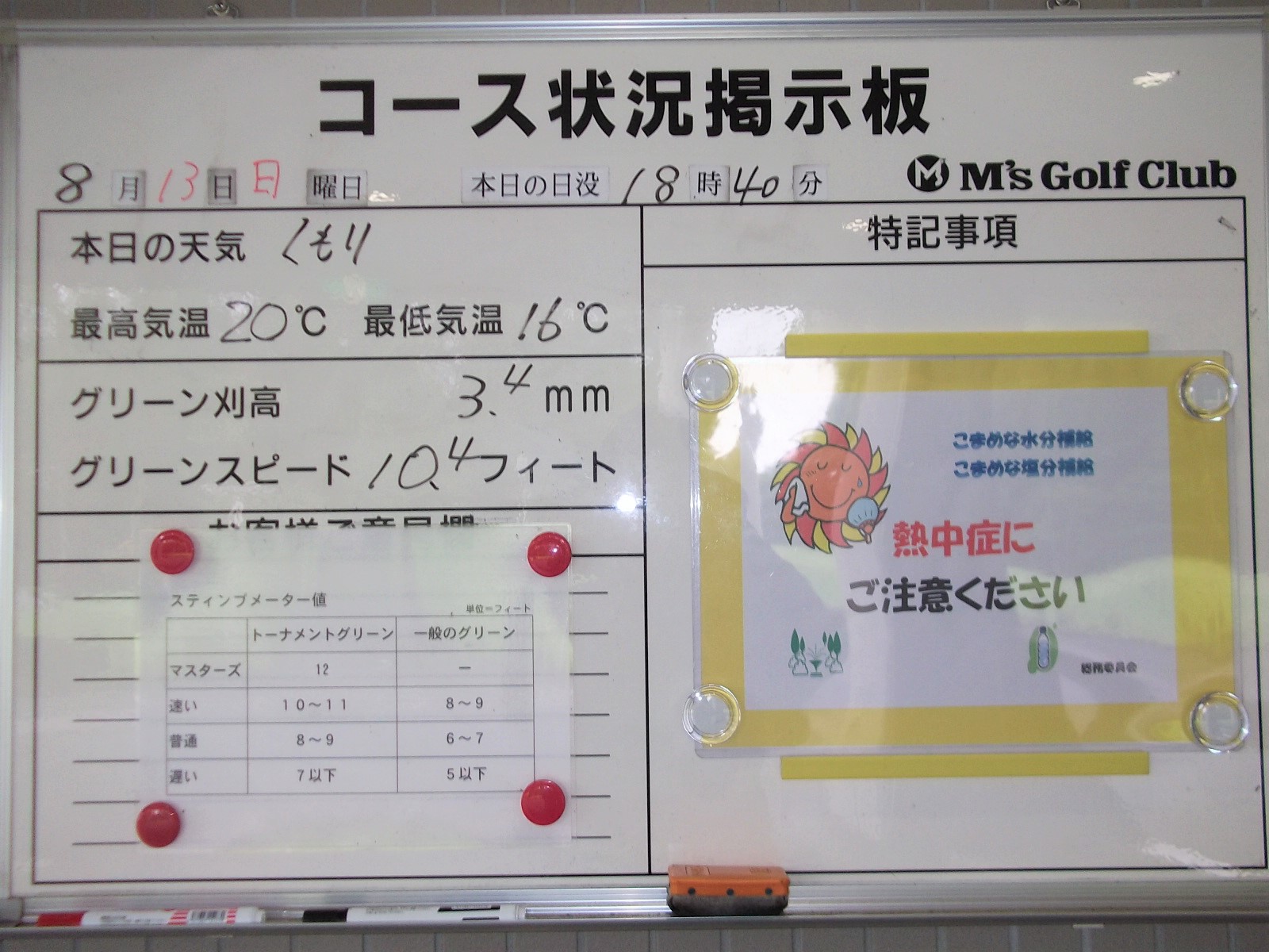 【本日のコース状況】